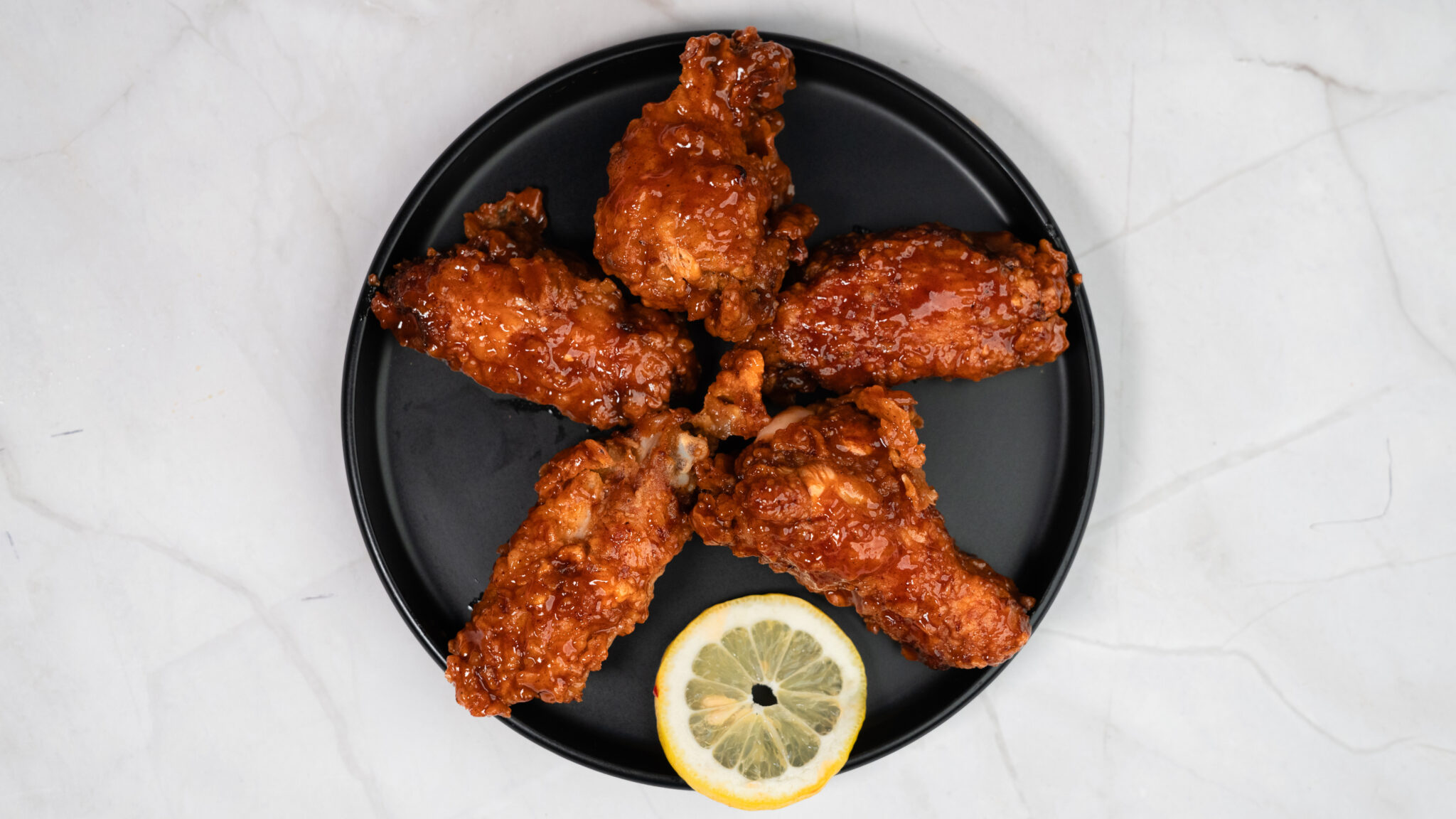 Crispy, golden wings deep fried coated in smoky, tangy BBQ sauce for a deliciously crunchy and flavorful bite.