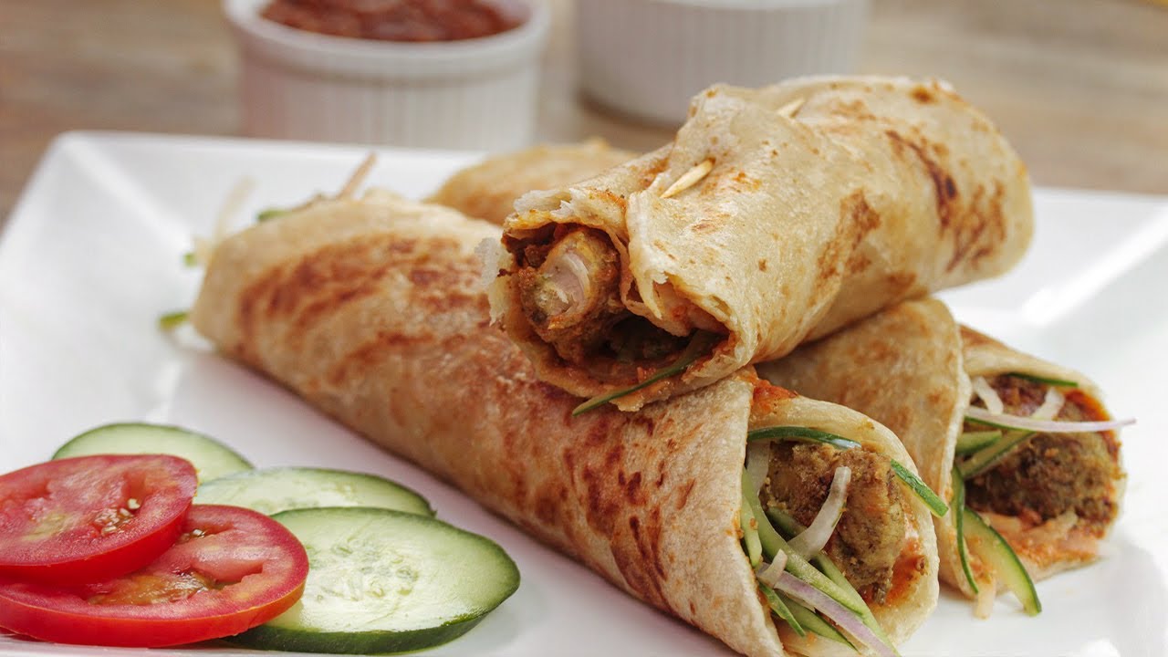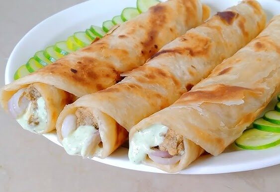 Beef behari kabab t thinly sliced skewer with onions , coriander wrapped in a paratha of your choice along with our special garlic mayo sauce